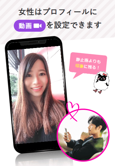 女性は自身の容姿を動画でアピールできますし、男性は女性の雰囲気を動画でチェックできます。